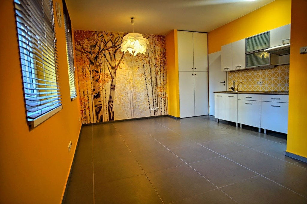 | Podłogi pokoi | panele, wykładzina |